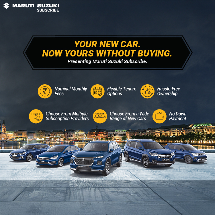 Maruti Suzuki Subscribe enables all customers to enjoy driving their preferred Maruti Suzuki cars without having to deal with all the financial responsibilities that come with owning a car.All you need to do is opt for a monthly subscription plan at a fixed monthly fee, which includes the routine maintenance and insurance costs, and choose a flexible tenure. At Fortune Cars (Jyoti Automobile) in, Alwar Bypass Road Bhiwadi, Bhiwadi, all Hatchback, Sedan, SUV, the MUV models line-up includes Baleno, Invicto, EVitara, Jimny, Ciaz, Ignis, Fronx, Grand Vitara, XL6. Here, you will enjoy Maruti Suzuki Subscribe benefits such as:
