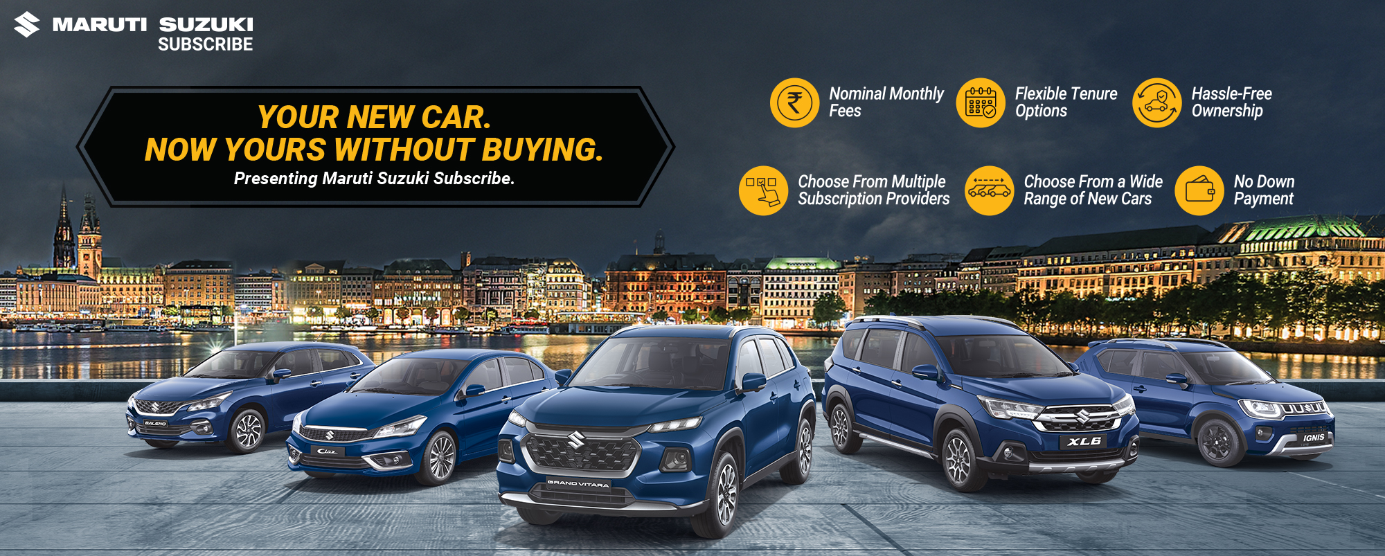 Located in Bhiwadi, Fortune Cars (Jyoti Automobile) offers a plethora of options of Nexa cars for Maruti Suzuki Subscribe. You can choose your desired Maruti Suzuki car and drive it home at nominal monthly fees for a variety of flexible tenure periods. Whether you prefer Hatchback, Sedan, SUV or even MUV you are sure to find it at Fortune Cars (Jyoti Automobile), Alwar Bypass Road Bhiwadi with an easy Maruti Suzuki Subscribe plan.
